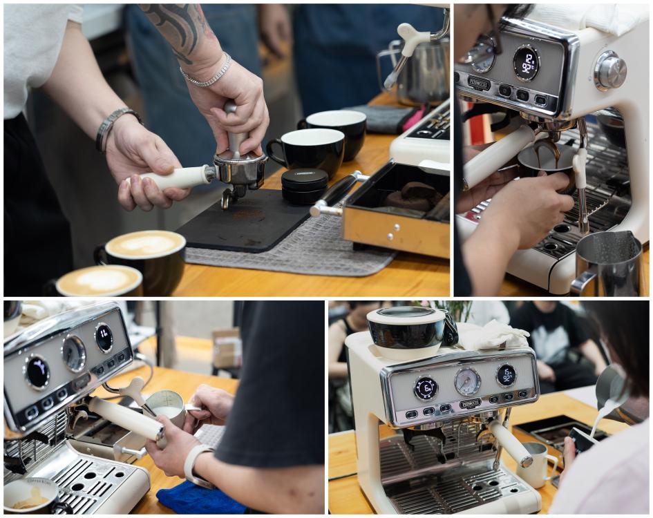 经现场专业人员展示/介绍产品,赛事使用Pedrocchi佩罗奇咖啡机,集研磨、萃取、蒸汽于一体,体验丰富,畅享制咖乐趣。