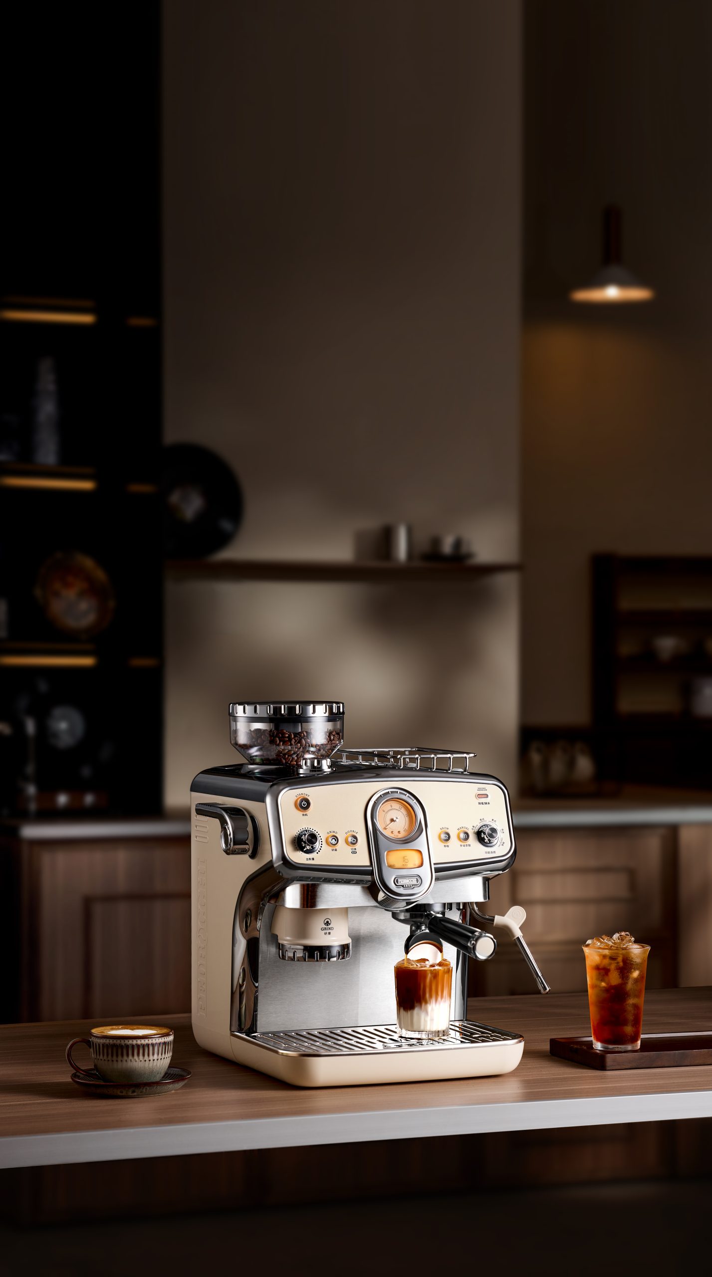 冷热双萃,智能布粉压粉,简化操作流程,可玩性高,享受真正的意式咖啡